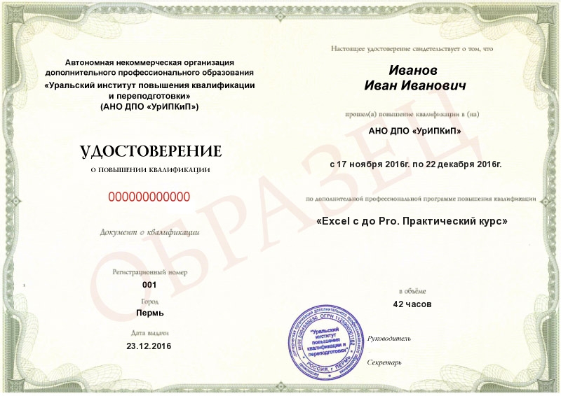 Заполненные образцы выдаваемых документов есть в описании учебных курсов и на странице «Лицензия. Документы», а также на главной странице официального сайта АНО ДПО «УрИПКиП».
