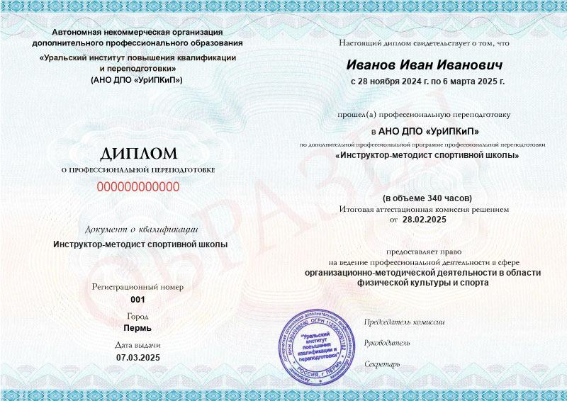 Курс обучения Инструктор-методист спортивной школы (340ч)