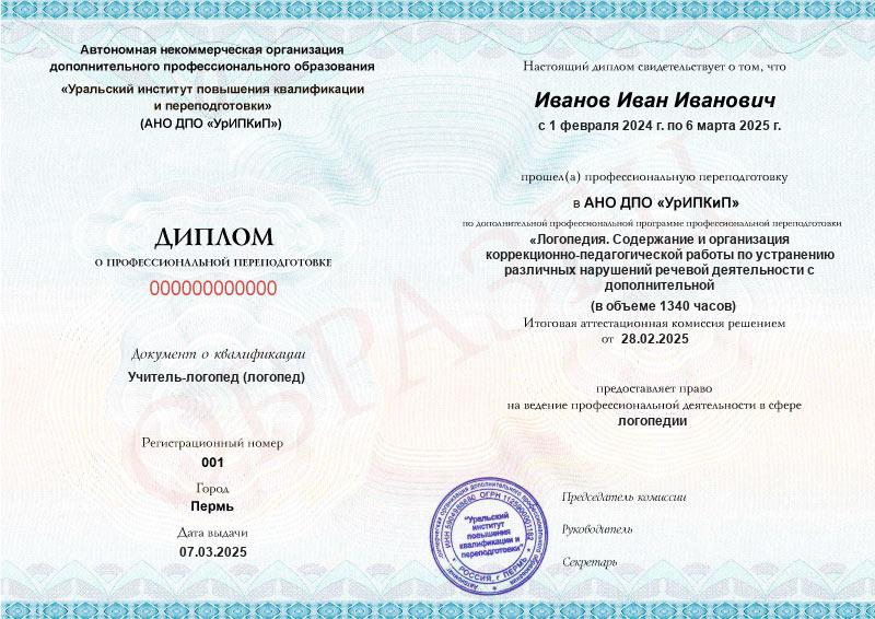 Да, дипломы и удостоверения оформляются в соответствии с действующим законодательством РФ. Документы печатаются на специальных бланках, заверяются печатью АНО ДПО «УрИПКиП».