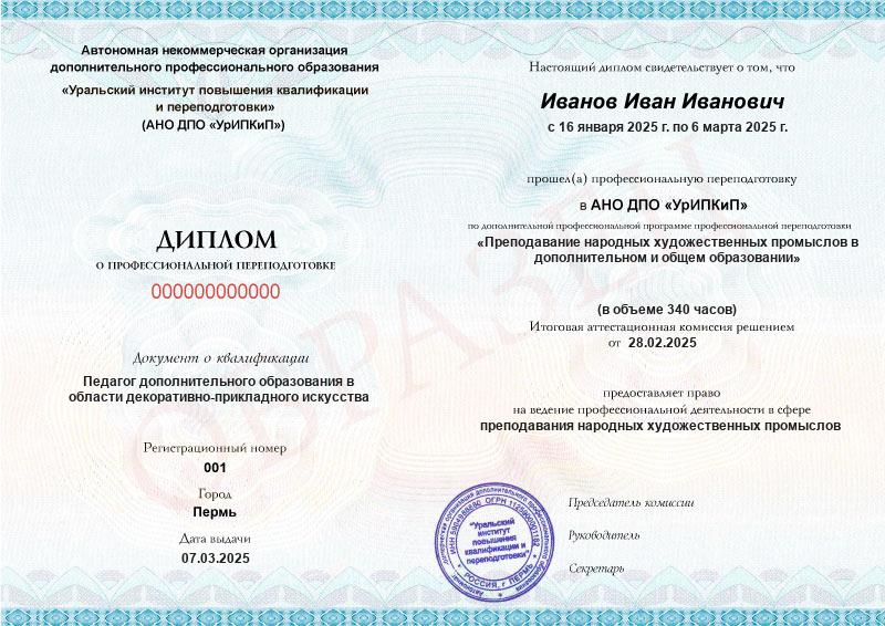 Да, дипломы и удостоверения оформляются в соответствии с действующим законодательством РФ. Документы печатаются на специальных бланках, заверяются печатью АНО ДПО «УрИПКиП».
