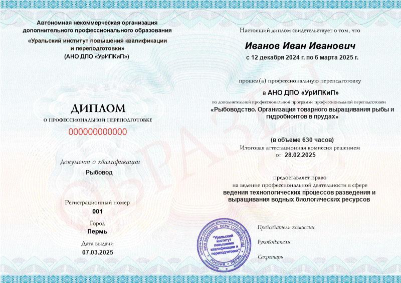 - Квалификация: Рыбовод