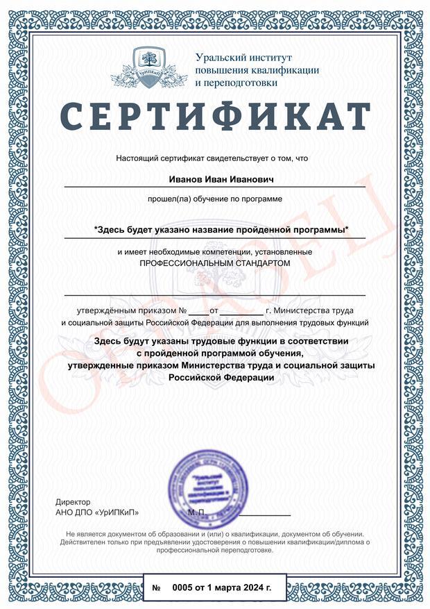 • Повышали квалификацию в АНО ДПО «УрИПКиП» – вам будет выдано удостоверение.