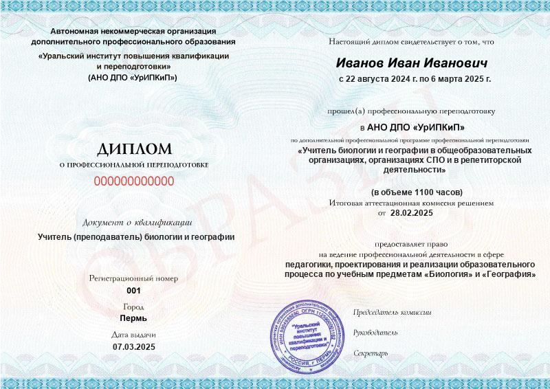 - 2 квалификации: Учитель (преподаватель) биологии и географии + Репетитор