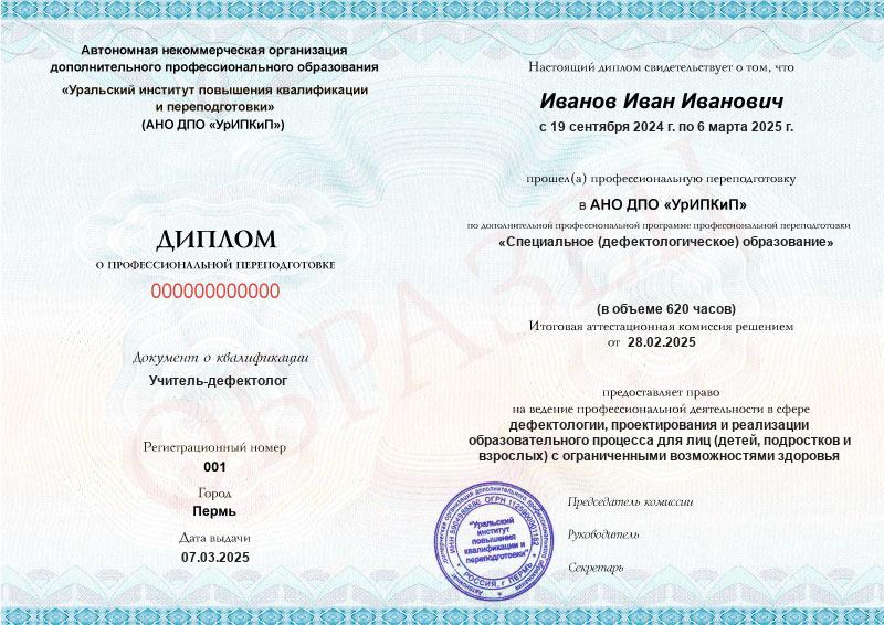 Да, дипломы и удостоверения оформляются в соответствии с действующим законодательством РФ. Документы печатаются на специальных бланках, заверяются печатью АНО ДПО «УрИПКиП».