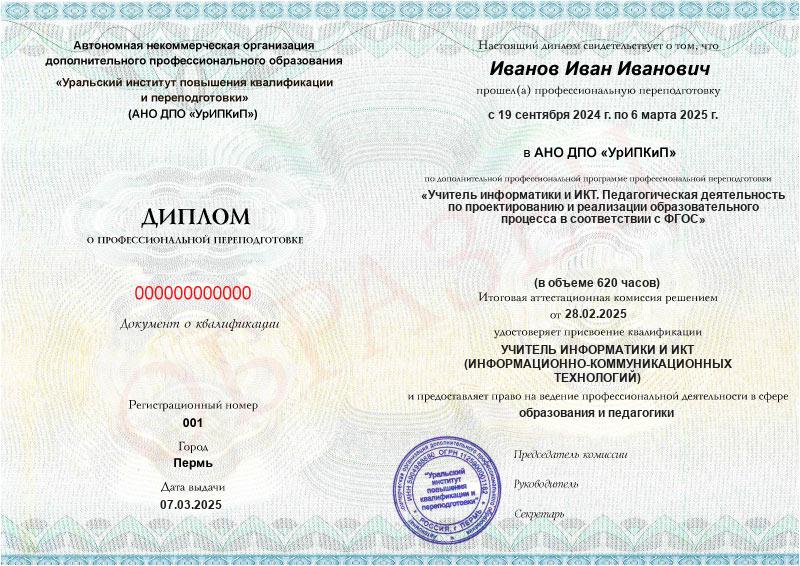 - Вы получаете диплом, подтверждающий достаточность ваших компетенций для работы учителем информатики и ИКТ;