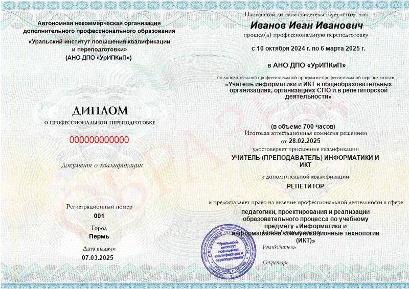 Курс обучения Учитель информатики и ИКТ в общеобразовательных организациях, организациях СПО и в репетиторской деятельности (700ч)