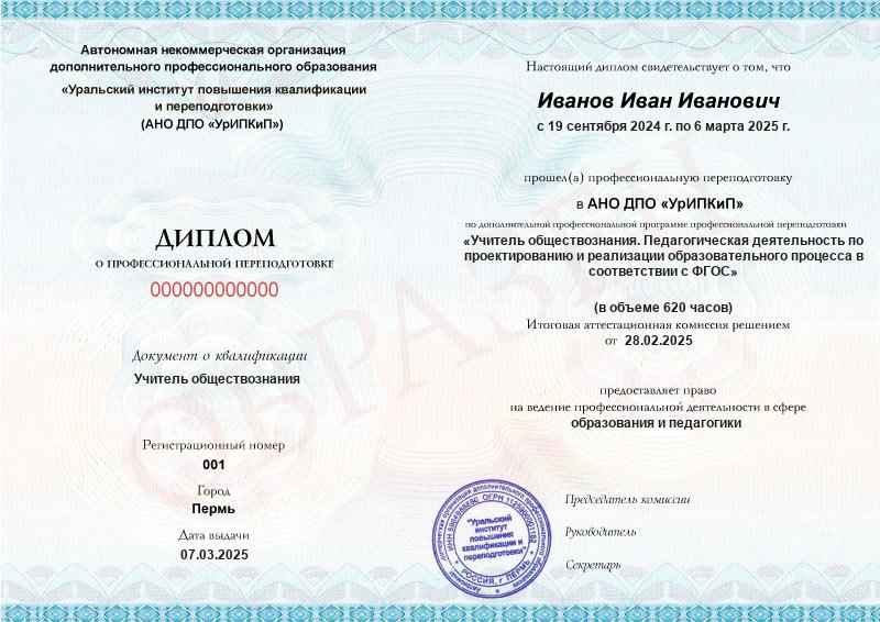 Курс обучения Учитель обществознания. Педагогическая деятельность по проектированию и реализации образовательного процесса в соответствии с ФГОС (620ч)
