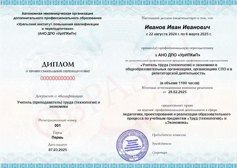 Курс обучения Учитель труда (технологии) и экономики в общеобразовательных организациях, организациях СПО и в репетиторской деятельности (1100ч)