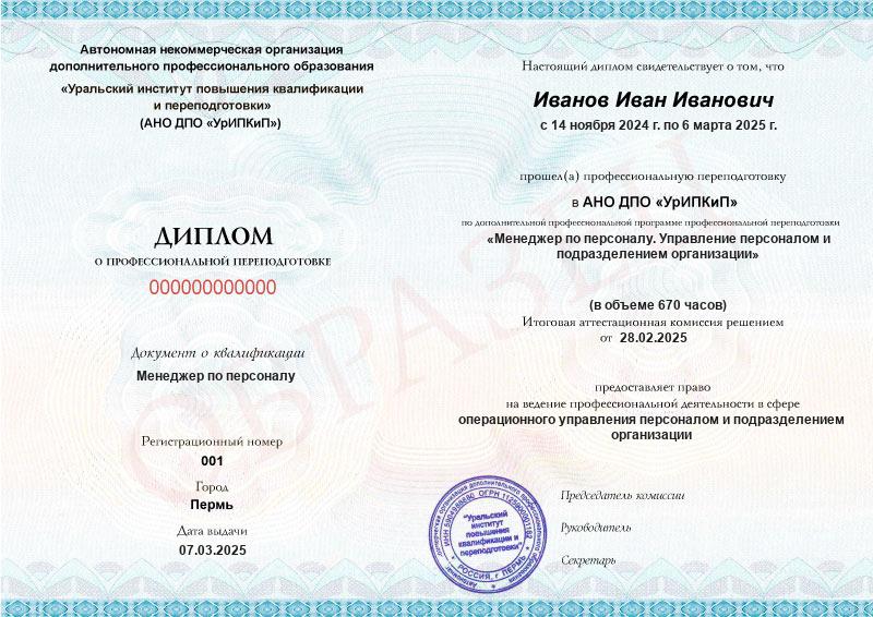 Курс обучения Менеджер по персоналу. Управление персоналом и подразделением организации (670ч)